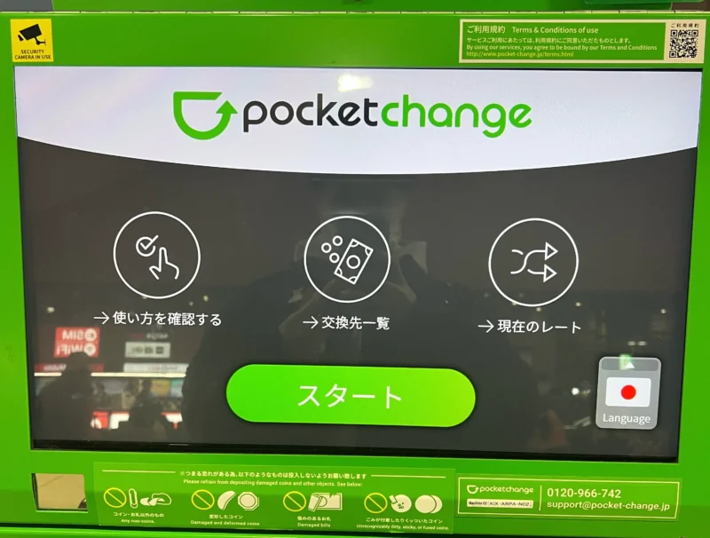 こちらのマシンは空港をはじめ全国に各々に設置されており、設置場所はpocket change (ポケットチェンジ)のホームページで確認可能です。