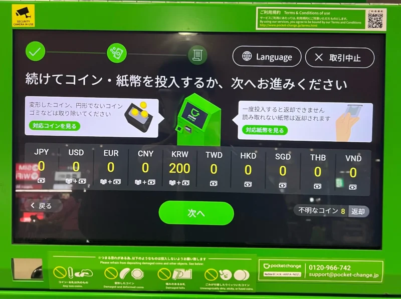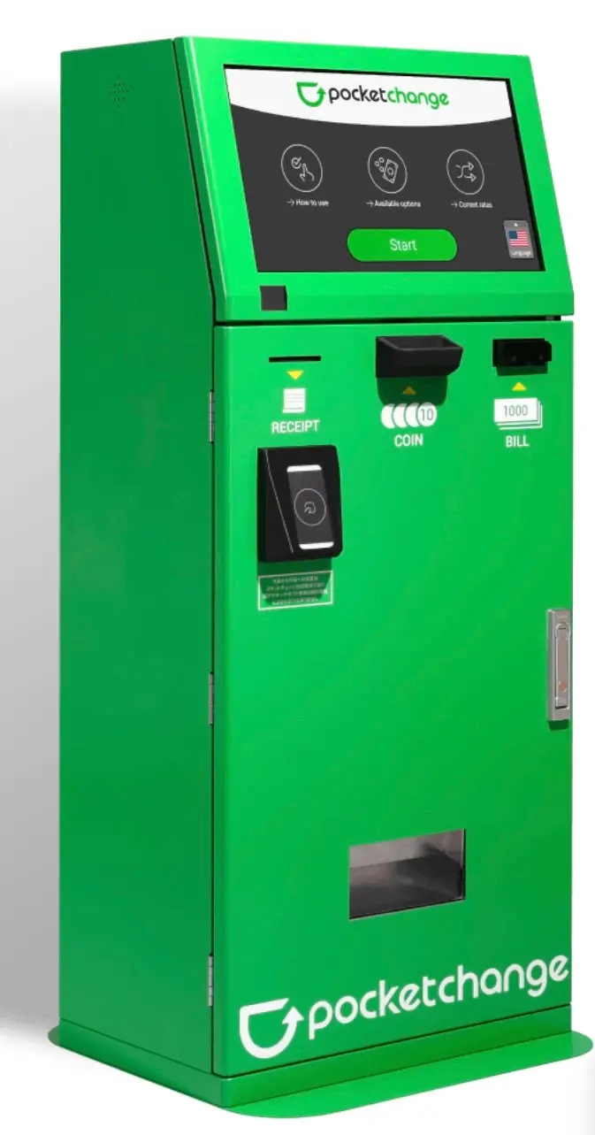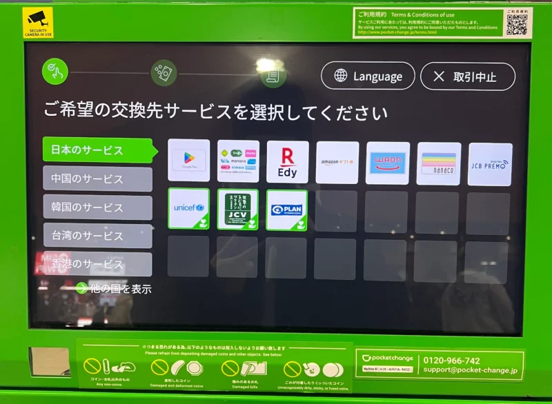 pocket change (ポケットチェンジ)とは、海外旅行で余った外国コインや外国紙幣を、その場ですぐに電子マネーやギフトコードに交換してくれる便利なキオスクマシンです。